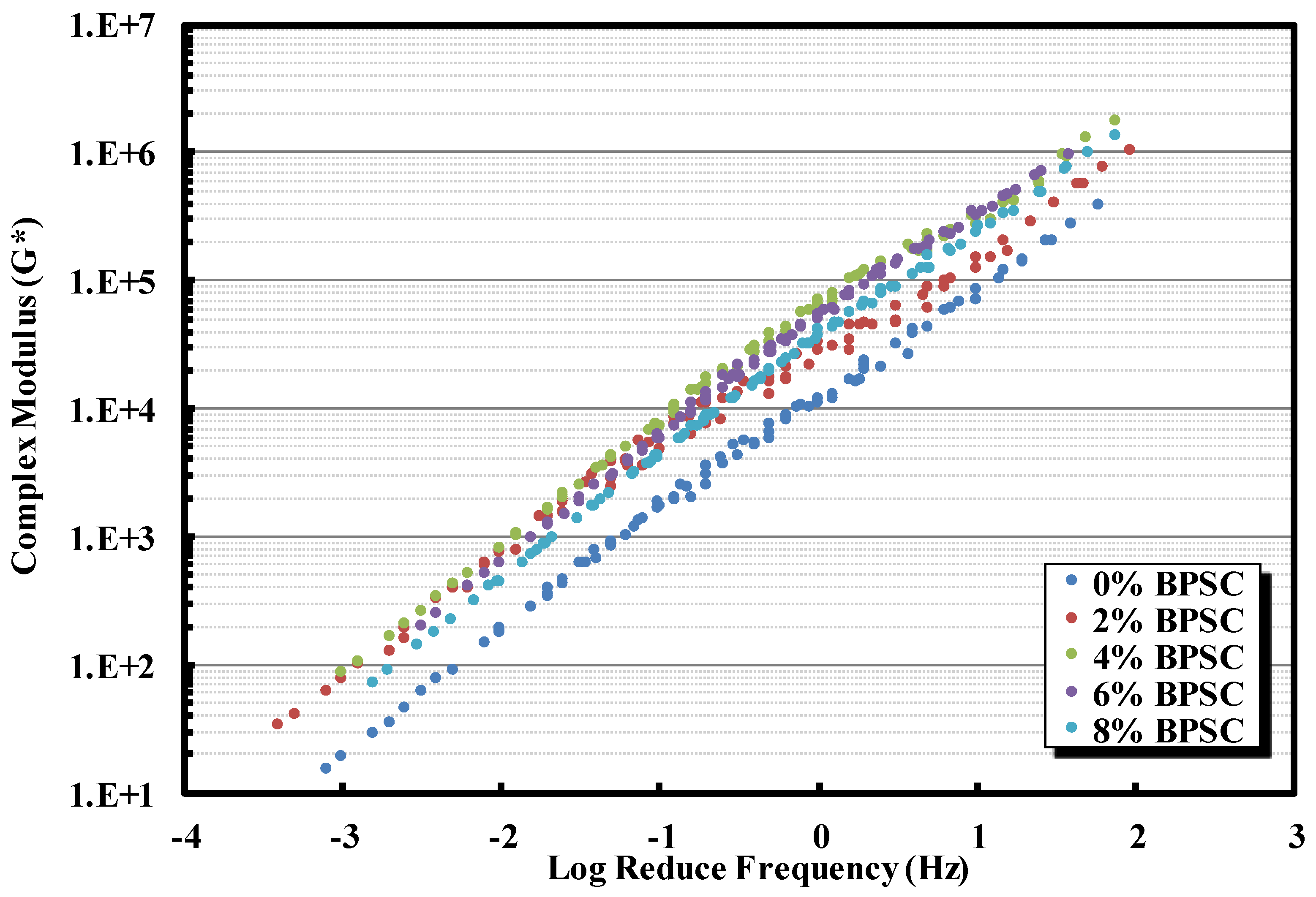 3.10. Effects of BPSC on the Rheological Properties of Asphalt