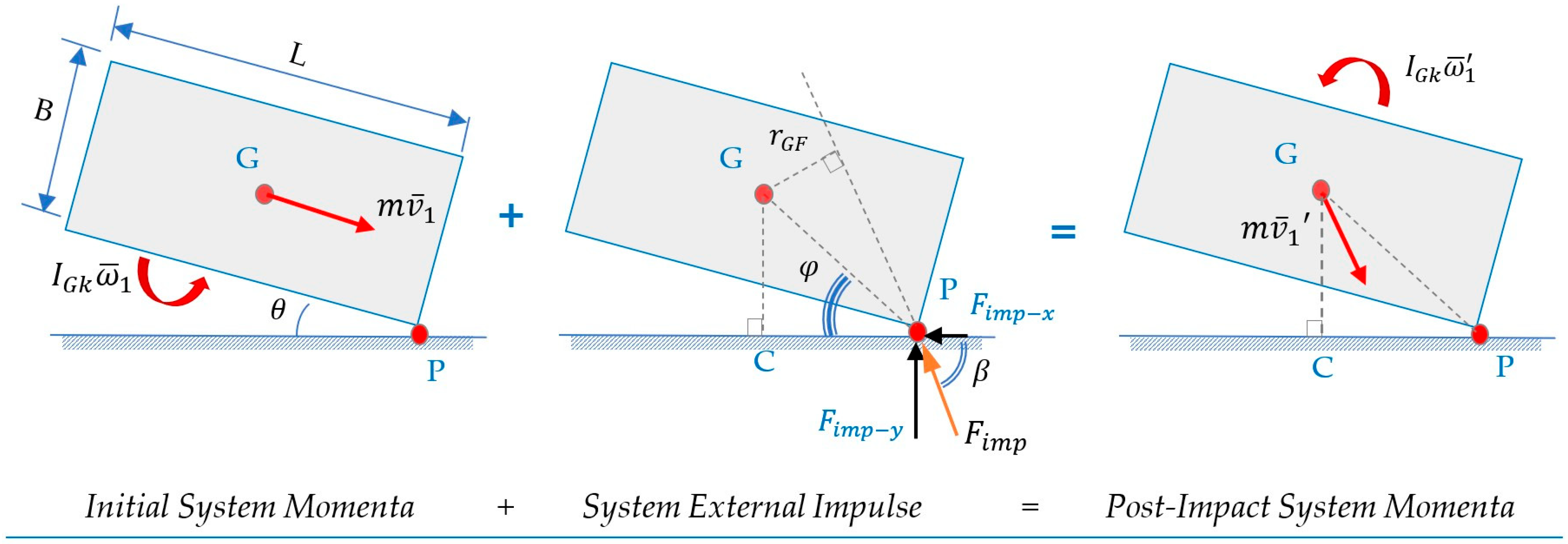 2.2.1. Stage 1—Impulse and Momentum Analysis