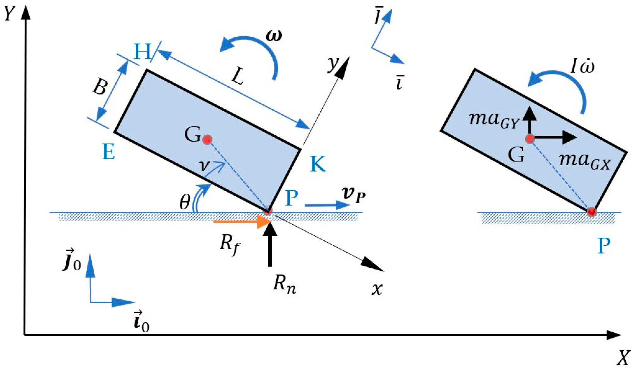 - Initial linear velocity of point P: as determined by Equation (33).