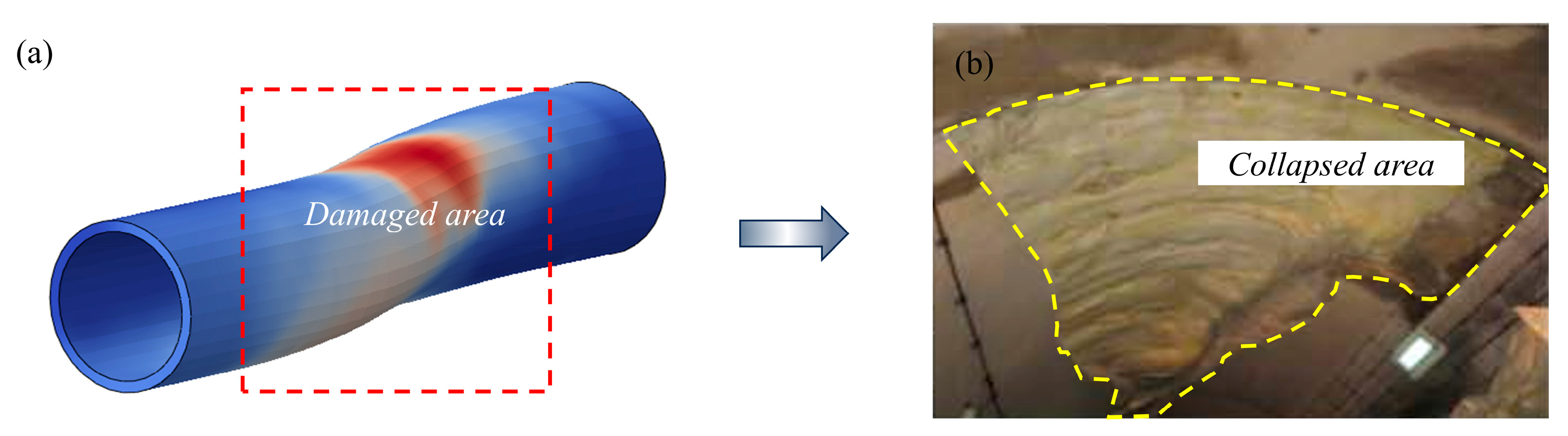 - Qin, Y.; Zhang, Y.; Liu, Z.; Liu, X. Experimental and analytical investigation of the mechanical behavior of deformed segmental tunnel linings strengthened by stainless steel corrugated plate. Tunn. Undergr. Space Technol. 2025, 157, 106355. [Google Scholar] [CrossRef]