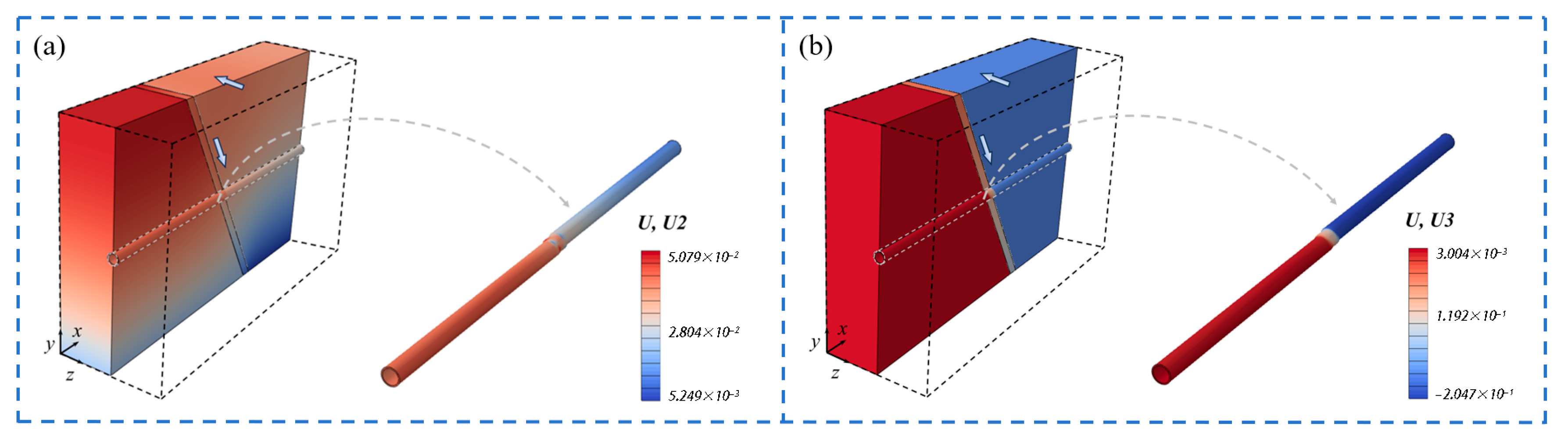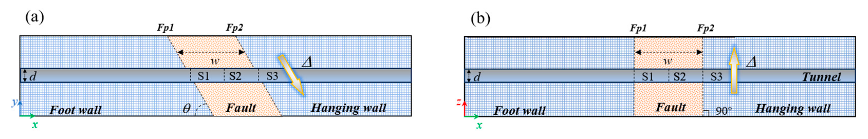 3.1. The Deformation Response Mechanism of Tunnels to the Displacement of Oblique-Slip Faults