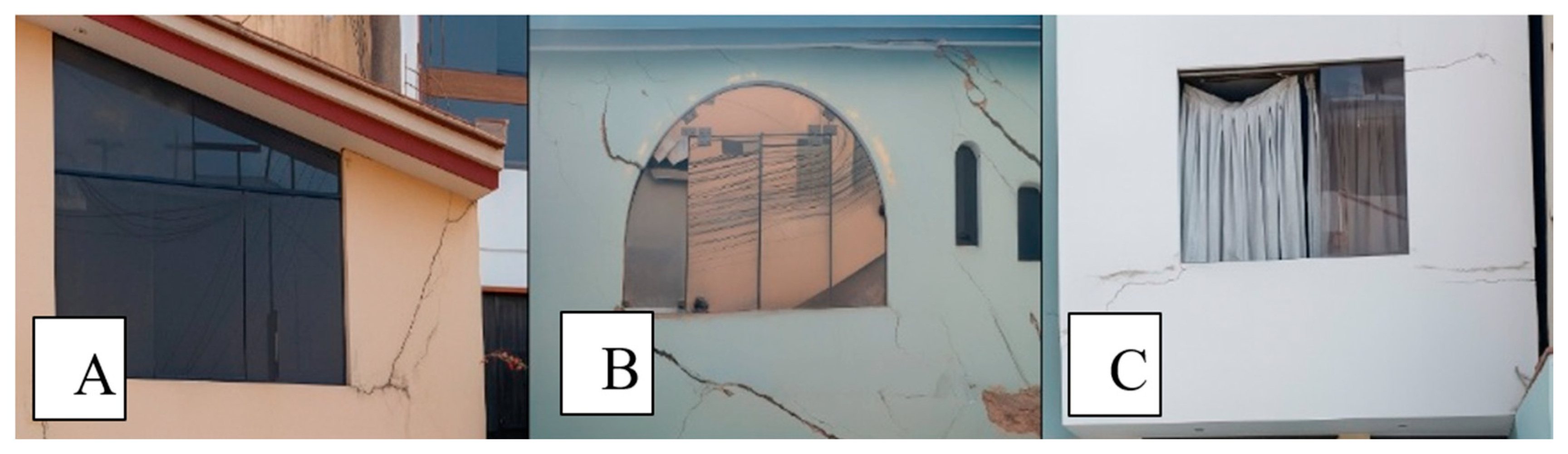 2.4.1. Photogrammetry Performed with High-Resolution Cell Phones on the Facades of the Homes in the Limatambo Urban Area