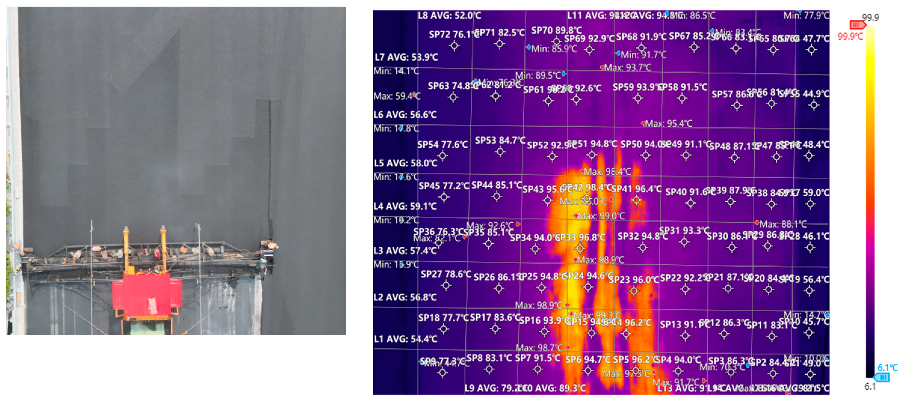 Within the height range of 7 to 10 m, all temperature curves exhibited remarkable consistency, with measurement variations of less than 1 °C. Furthermore, the infrared temperature measurements showed excellent agreement with a point-and-shoot pyrometer reading of 34.2 °C. Therefore, this height interval is established as the standard measurement range, with 34 °C designated as the baseline value. As measurements obtained outside this range require temperature correction [23], this range was determined empirically as the optimal operational window. Within this altitude band, the temperature measurements demonstrated high stability (variation < 1 °C) and showed excellent agreement with ground-truth measurements from the handheld infrared thermometer (34.2 °C). Altitudes below this range risk operational safety and reduced coverage, while higher altitudes introduce greater environmental interference and measurement uncertainty.