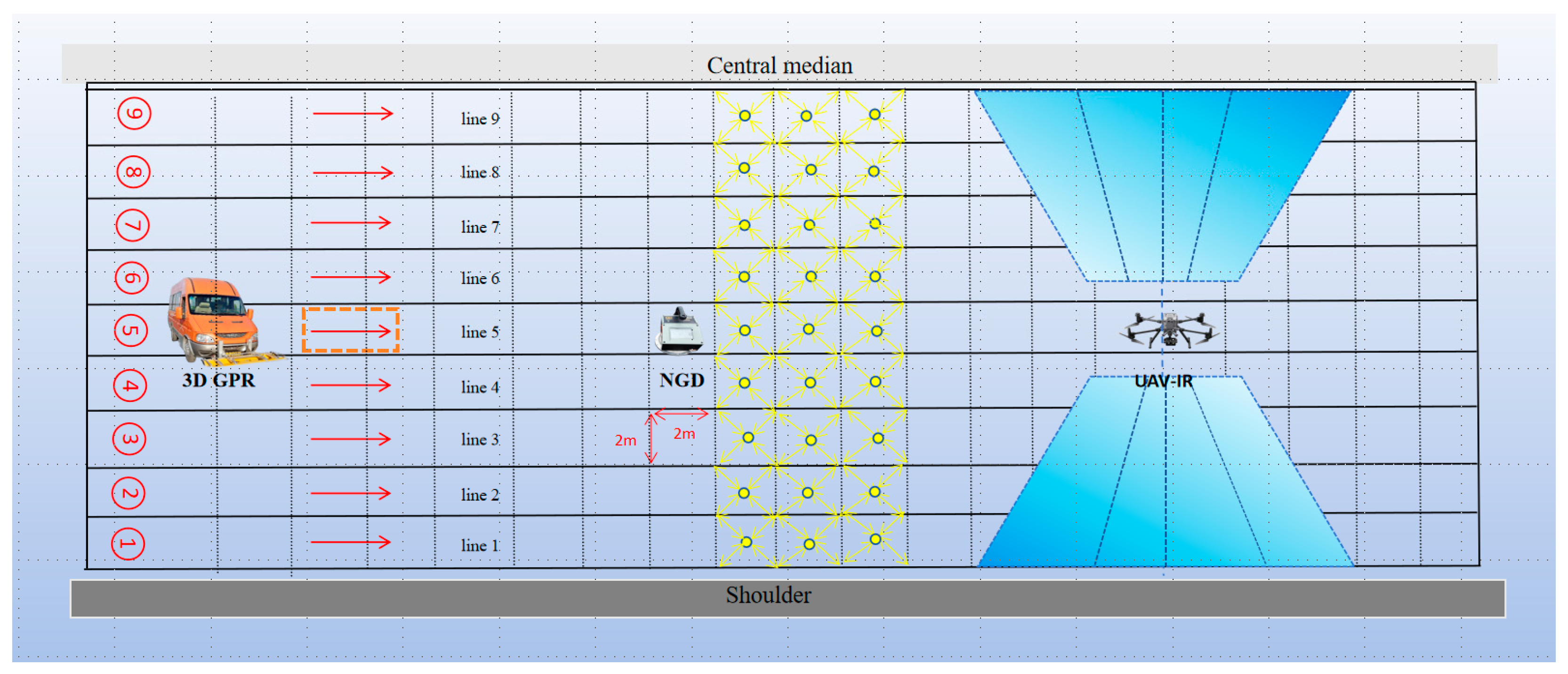Therefore, building upon the characteristics of various NDT technologies, this study proposes an integrated Aerial-Ground Collaborative framework for asphalt pavement quality inspection. The core contributions are: