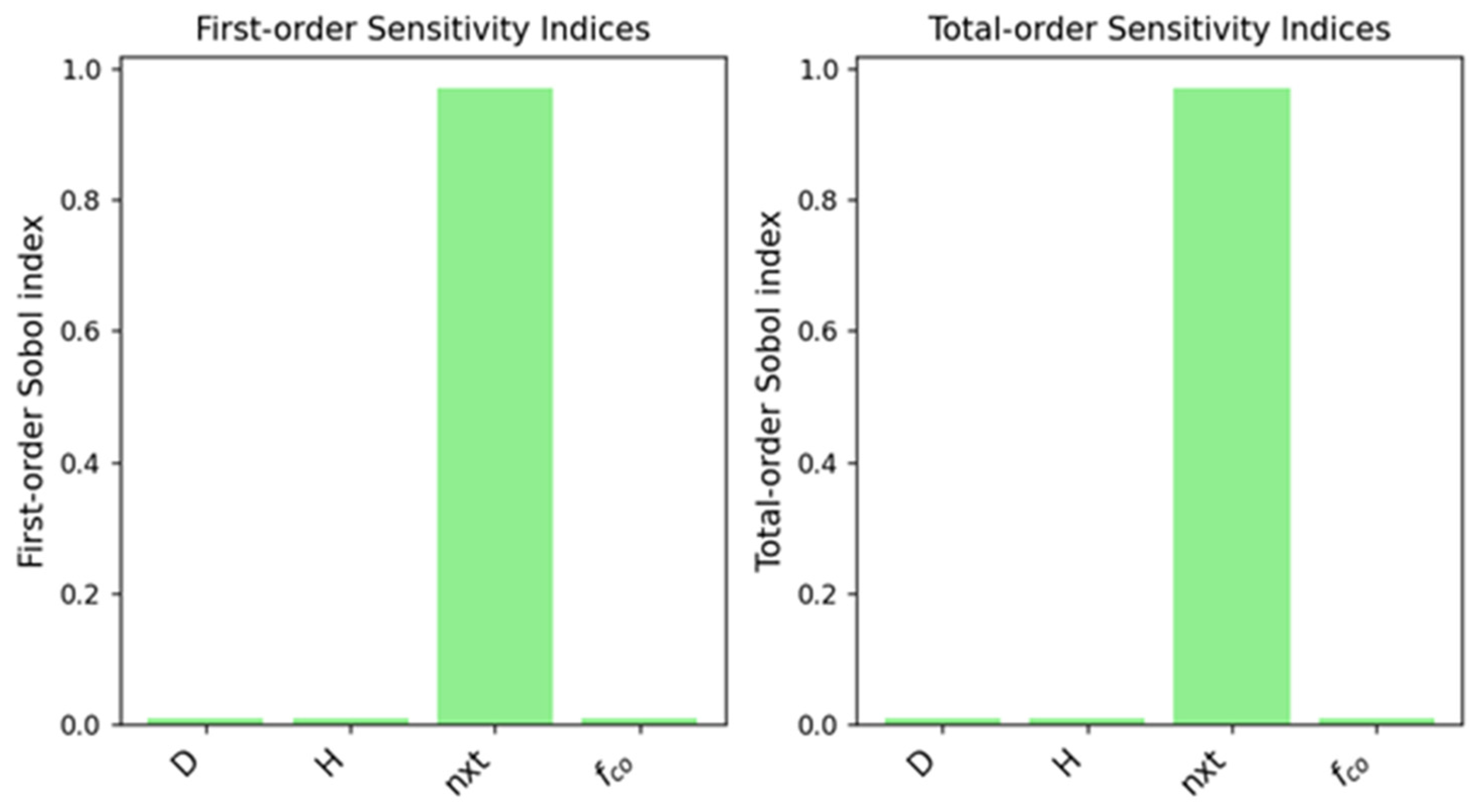 In this study, an extensive experimental database comprising approximately 183 CFRP-confined concrete columns was compiled from previous research. The dataset includes key parameters such as unconfined concrete strength, CFRP jacket thickness, and the mechanical properties of the CFRP—particularly the fiber strain at rupture. Geometric characteristics, including the diameter (D) of circular columns and the cross-sectional dimensions (b × h) of rectangular and square columns, were also incorporated. Based on this dataset, the study (i) quantitatively evaluates the influence of each confinement parameter through Pearson correlation and Sobol sensitivity analyses, and (ii) develops predictive models using multiple linear regression and artificial neural networks (ANNs). The results demonstrate the superior predictive capability of ANN-based models, providing a reliable framework for the design and optimization of CFRP confinement systems.