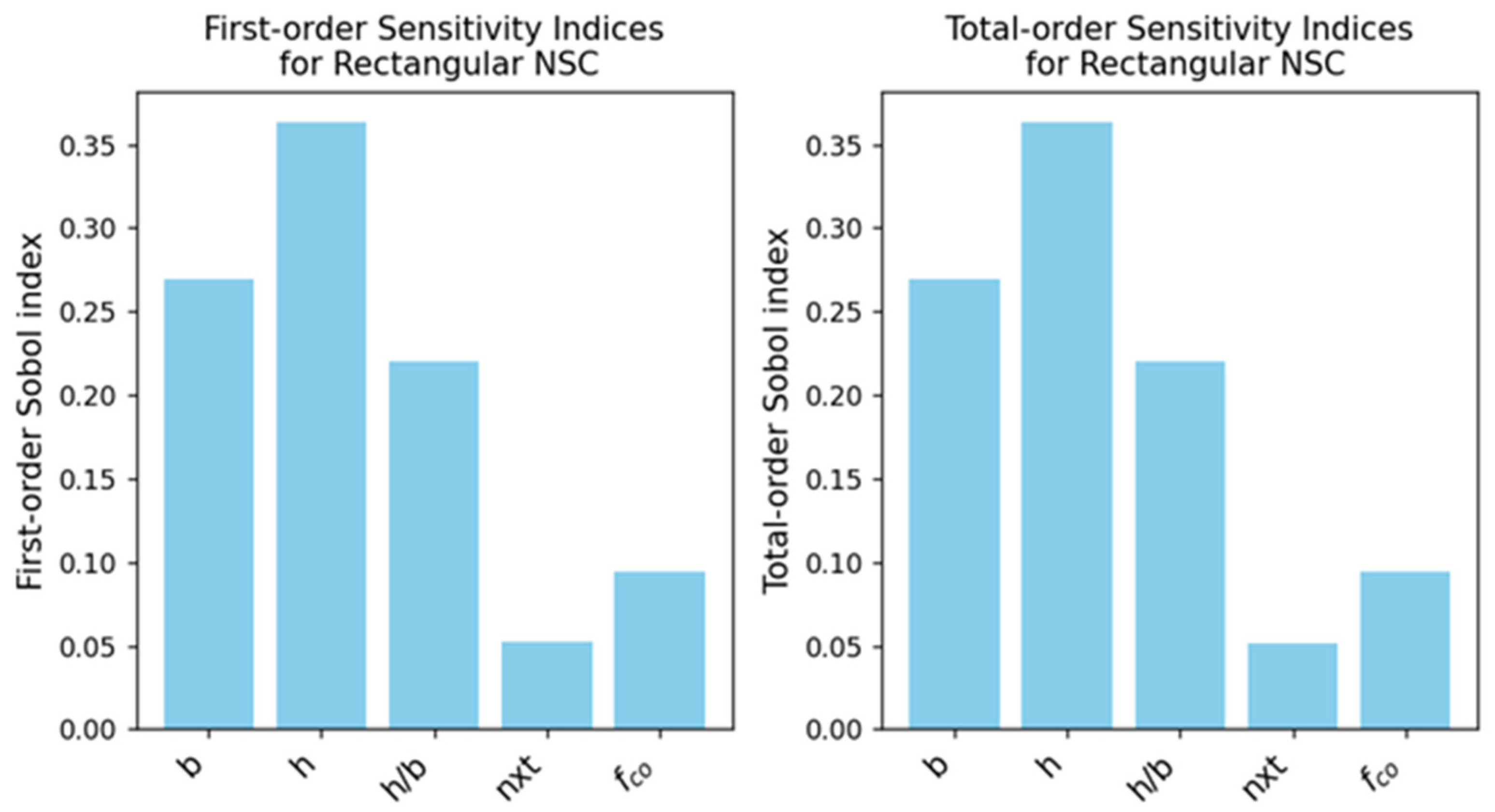 Given the limited sample size, this subset was excluded from the main statistical and predictive analyses to maintain the robustness and reliability of the results. Consequently, the findings and developed models presented in this study primarily apply to circular and rectangular columns made with normal-strength concrete, and to circular columns with high-strength concrete. Future research should focus on expanding the experimental database for rectangular HSC specimens to validate and generalize the conclusions drawn herein. This limitation does not affect the validity of the conclusions for the studied configurations but restricts their generalization to rectangular HSC columns.
