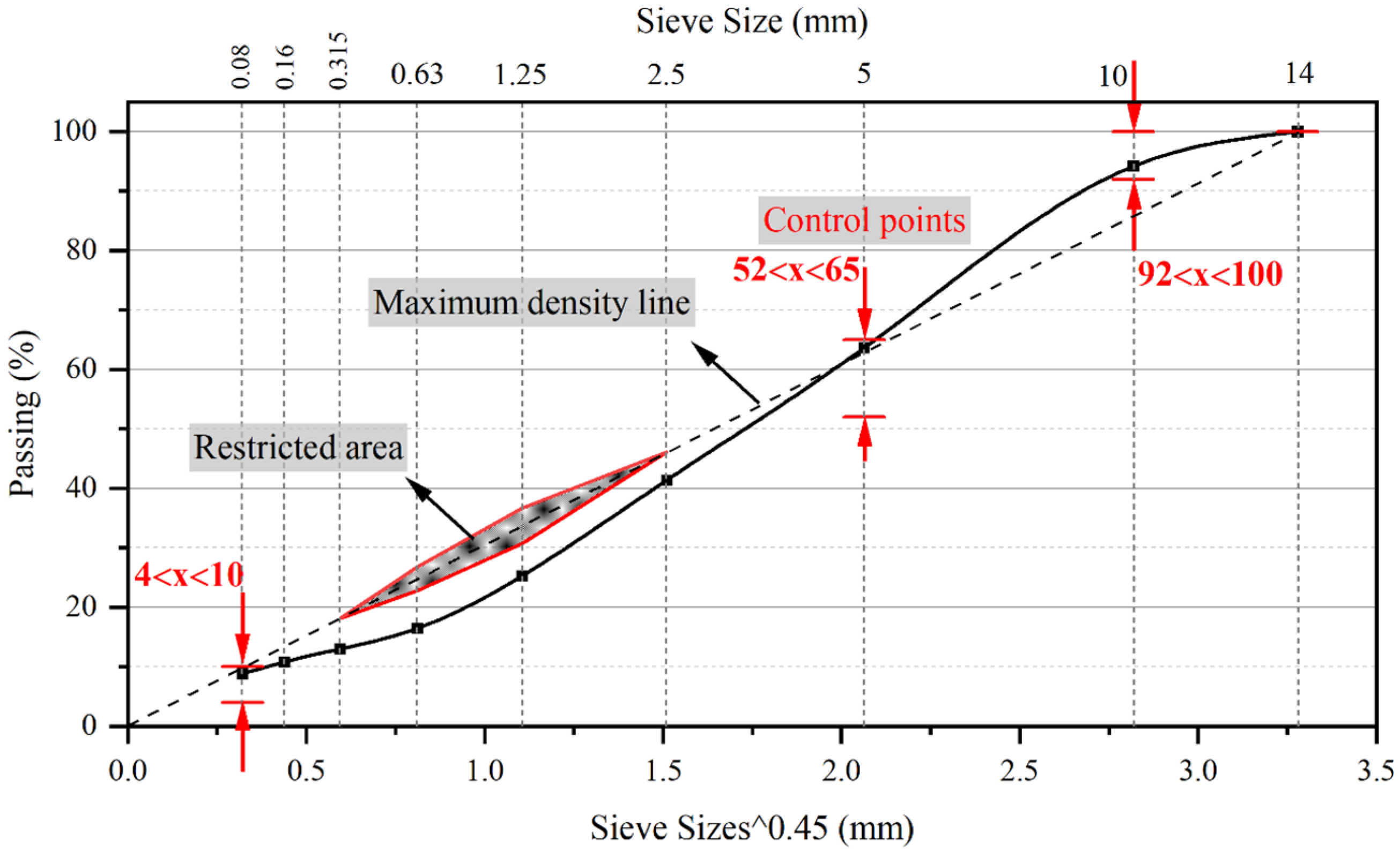 The LC (Laboratoire des Chaussées) Method, developed by Quebec’s MTMD (Ministère des Transports et de la Mobilité Durable), has a hybrid approach, incorporating elements of both the Superpave and the LCPC (Laboratoire Central des Ponts et Chaussées) methods. One of the significant distinctions of the LC method is its reliance on the volume of effective binder (Vbe) for calculating the binder content, rather than the commonly used voids in mineral aggregate (VMA) and voids filled with asphalt (VFA). The LC method’s main features include setting the Vbe according to the specific type of mixture to be designed and optimizing the aggregate grading to meet air voids specifications (Va) at a given level of compaction energy. This volumetric approach ensures the mix achieves the desired performance and durability characteristics. Although similar to Superpave, the LC method is tailored to Quebec conditions and enables more precise control of binder content through Vbe, which is particularly beneficial when incorporating additives with different specific gravities.
