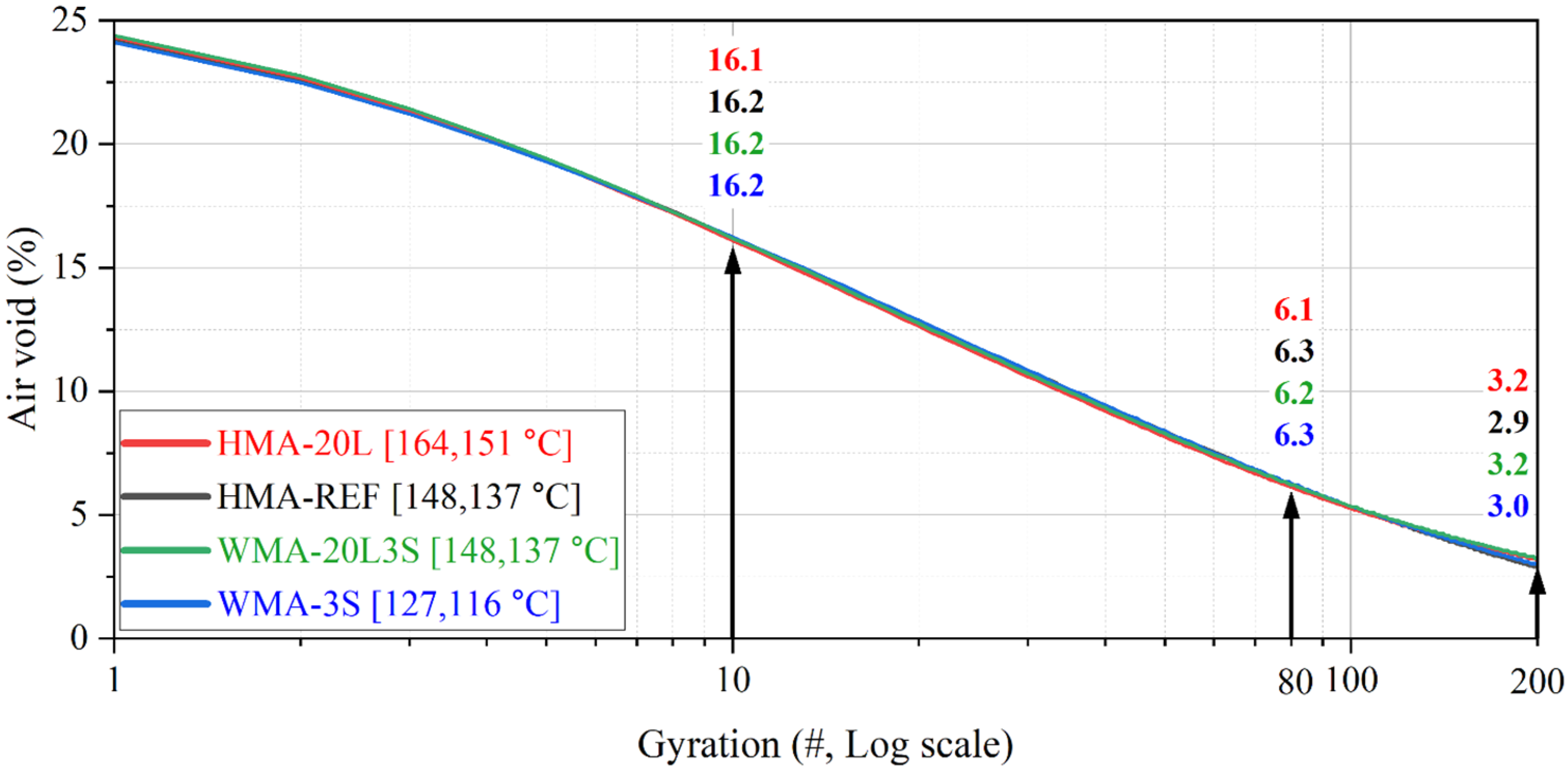 22]. Between those, the air voids method has emerged as the most reliable and widely used approach for determining WMA construction temperatures [