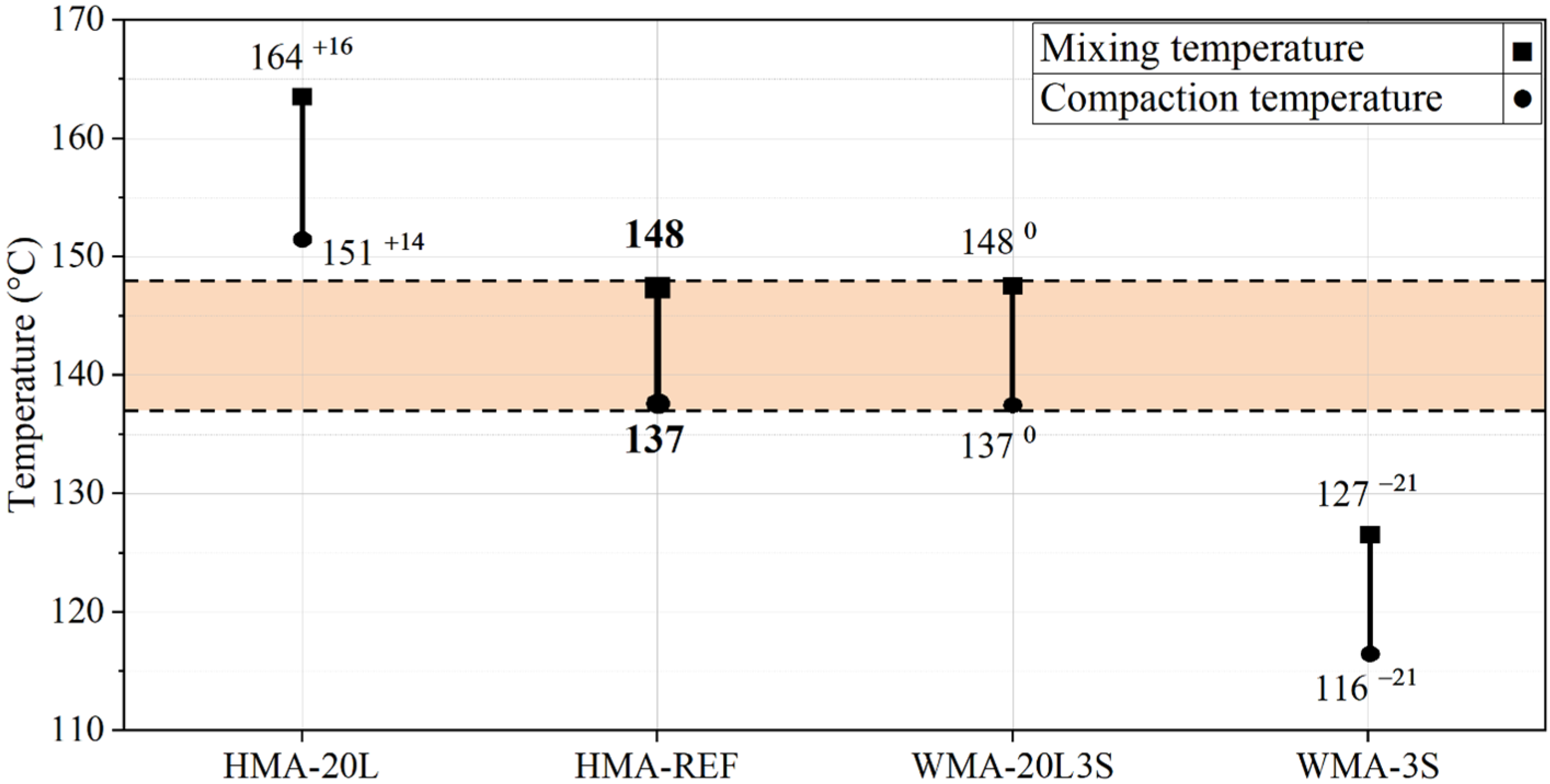 7]. One of the most effective strategies for advancing sustainability in asphalt production is through innovations in the asphalt mix’s construction temperatures, which have a direct and significant impact on both energy consumption and emissions.