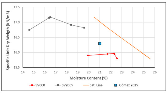 Volcanic ash does not exhibit cementitious behavior in the absence of an activator; therefore, SV20C0 behaves similarly to a soil mixed with an inert fine granular material. These control mixtures allowed for a direct comparison with the combined ash–lime mixtures to evaluate the contribution of each component to the short-term stabilization.