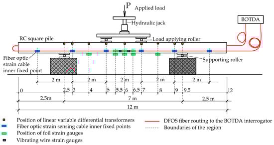 - It provides a comprehensive experimental evaluation of a single-mode fixed-point DFOS cable installed on a 12 m RC beam tested under four-point bending, using Brillouin time-domain interrogation consistent with current DFOS practice [1,2,3,21];