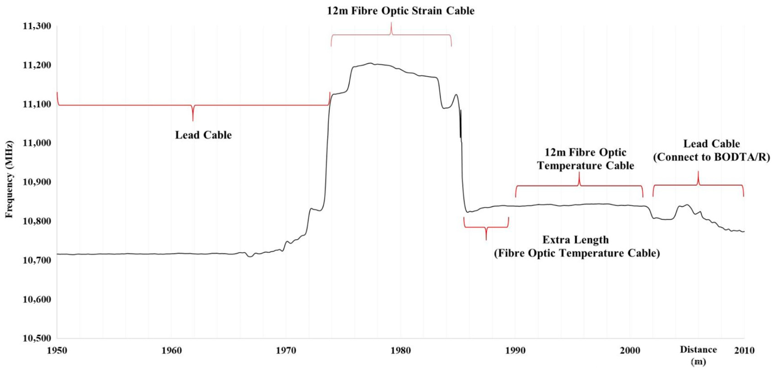 | Temperature fiber (parallel cable) | SM loose-tube, 3 mm OD | Stainless-steel helical protection tube; Kevlar reinforcement; single-mode optical core | Temperature compensation for Brillouin DFOS measurements |