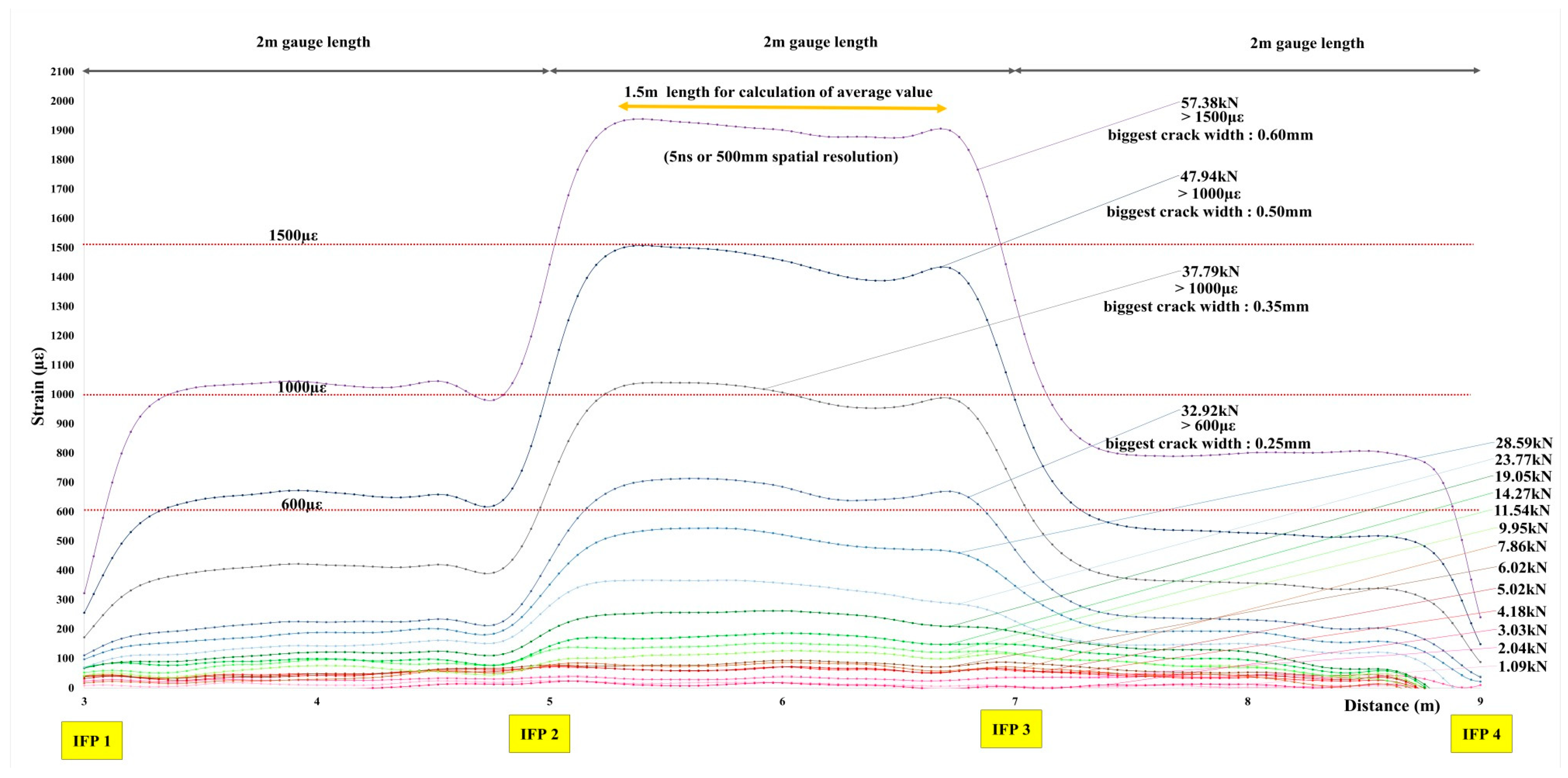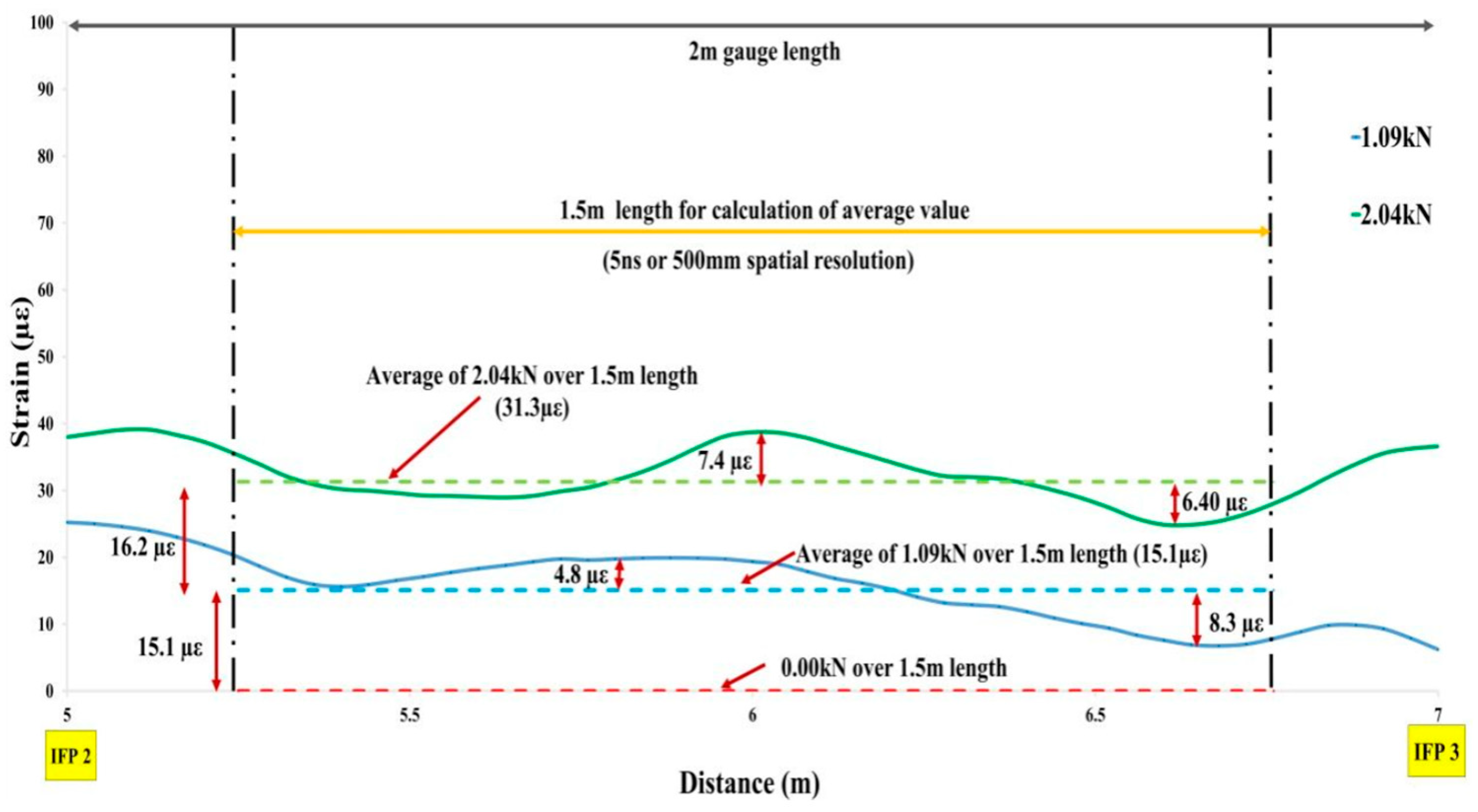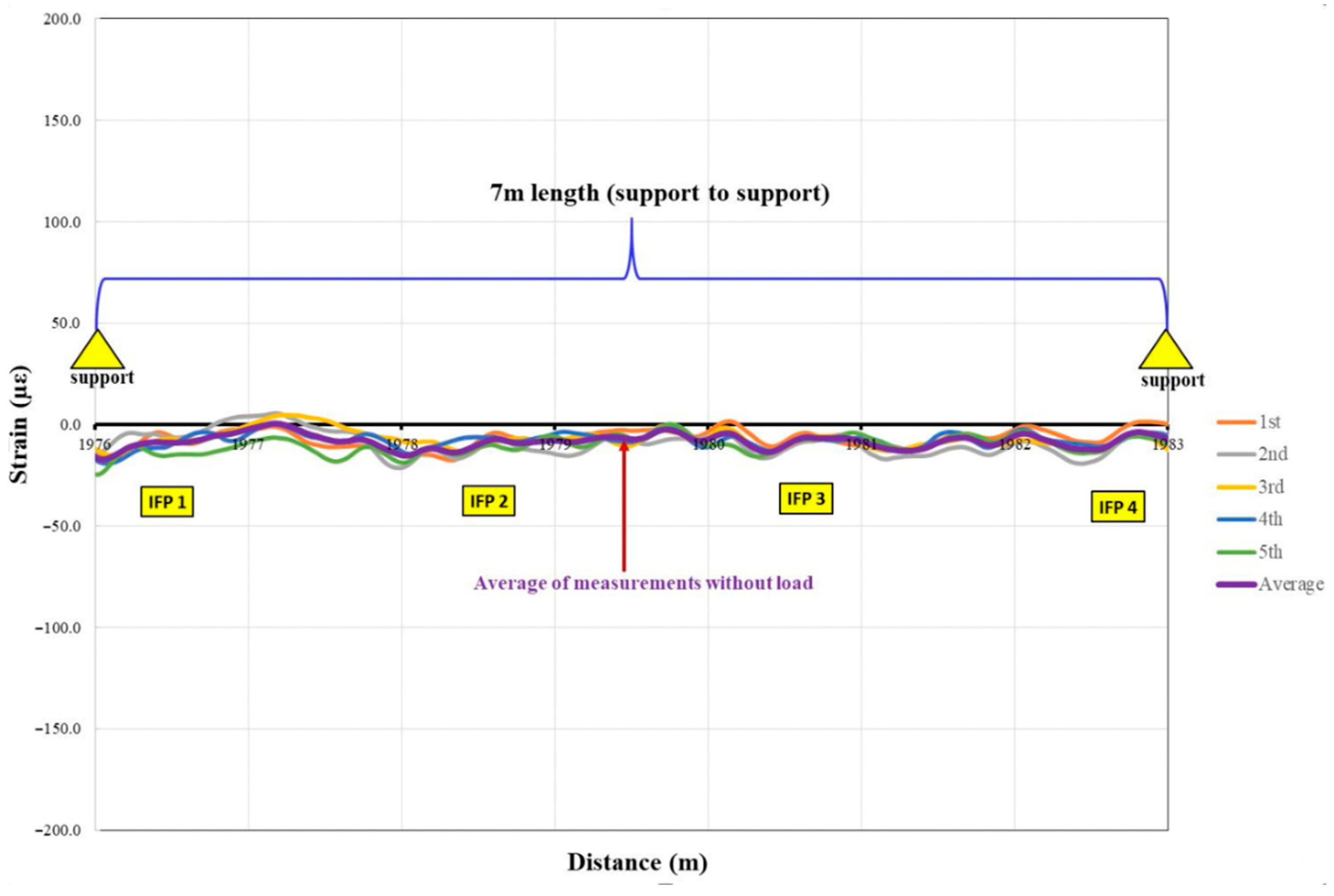 - Repeatability of unloaded DFOS baselines within several tens of microstrain;