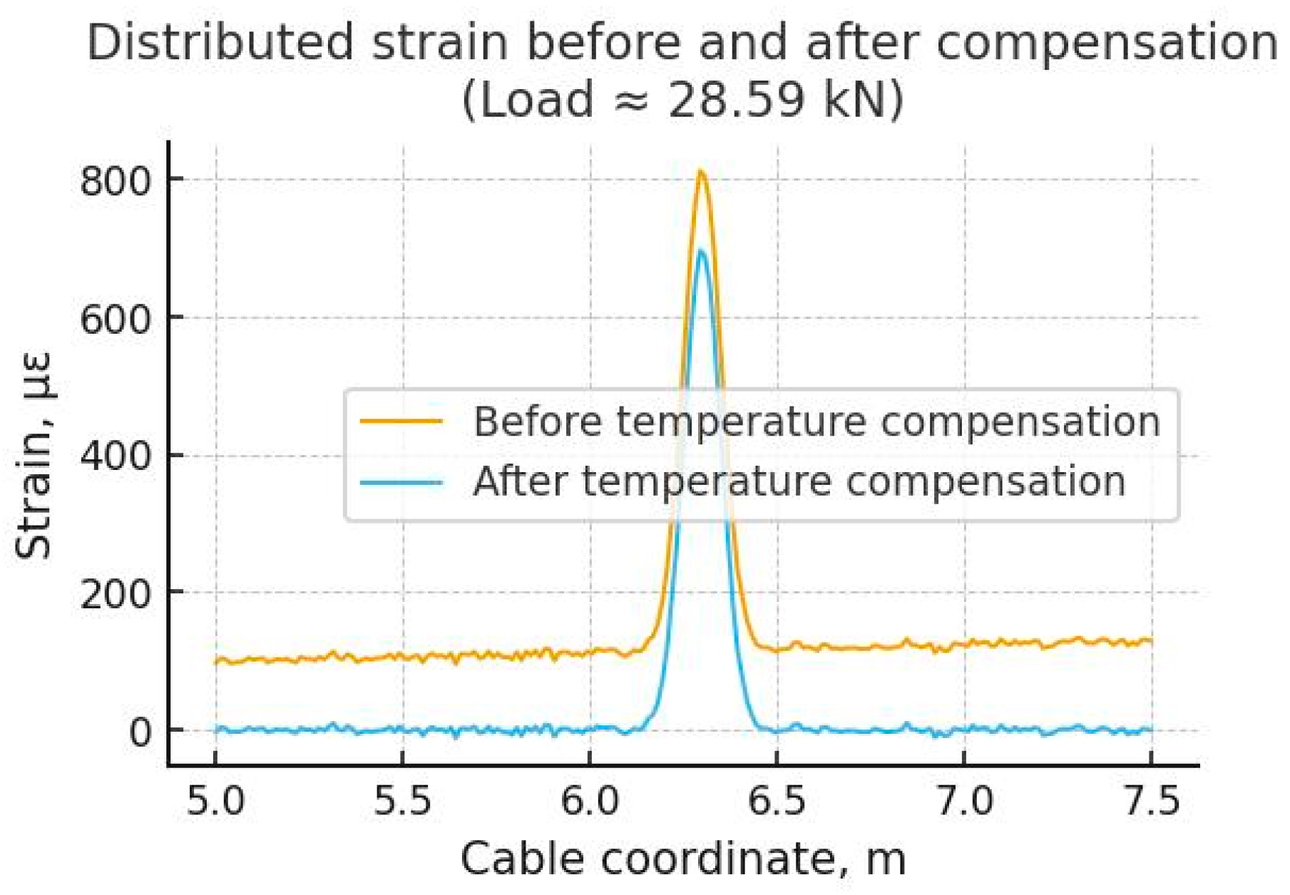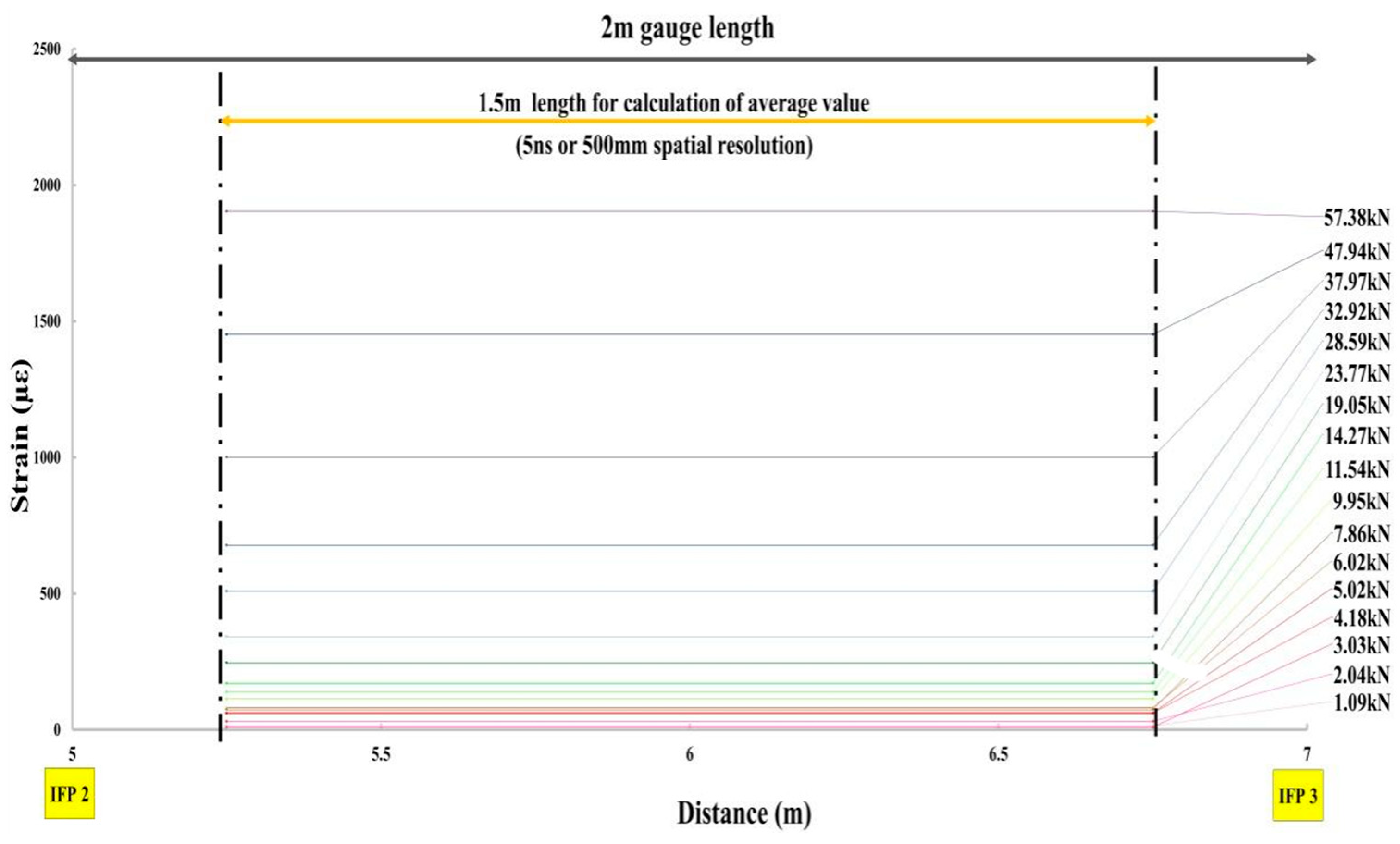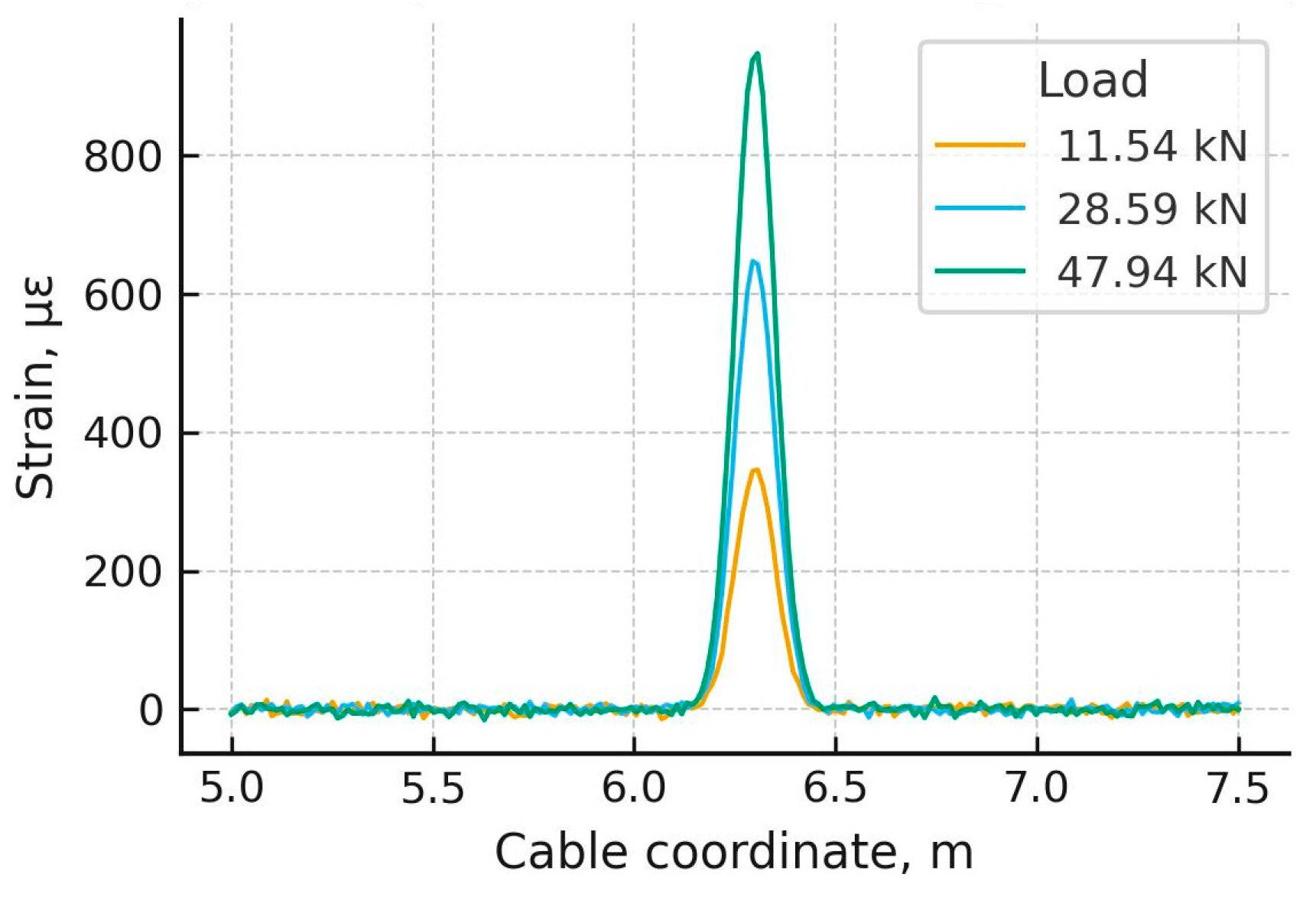 - Repeatability of unloaded DFOS baselines within several tens of microstrain;