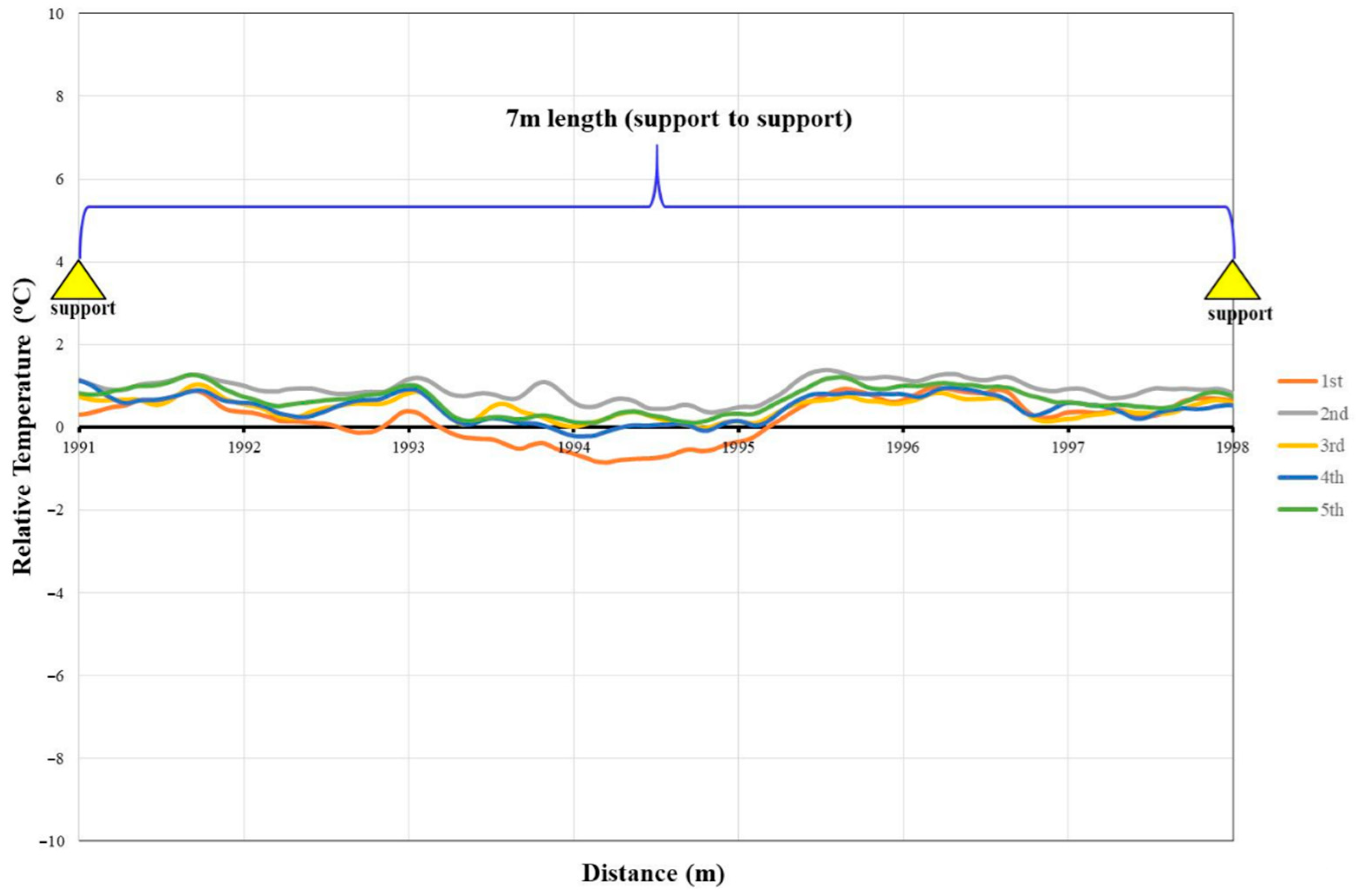 | Brillouin interrogator | Neubrex NBX-7020 series (Brillouin Optical Time-Domain Analyzer) | Spatial sampling interval 5 ns (≈0.5 m); fixed pump–probe configuration; constant averaging cycles; Brillouin frequency-shift measurement for strain/temperature | Acquisition of distributed strain and temperature profiles |