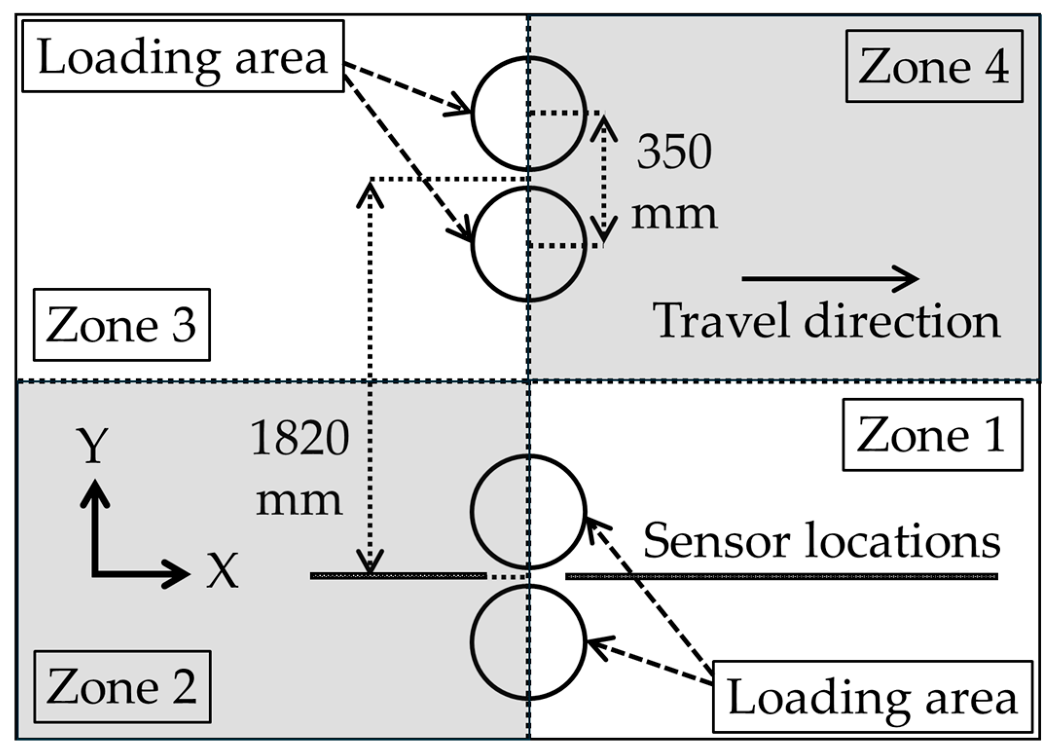 Static loading configuration at each axle side (not to scale).
