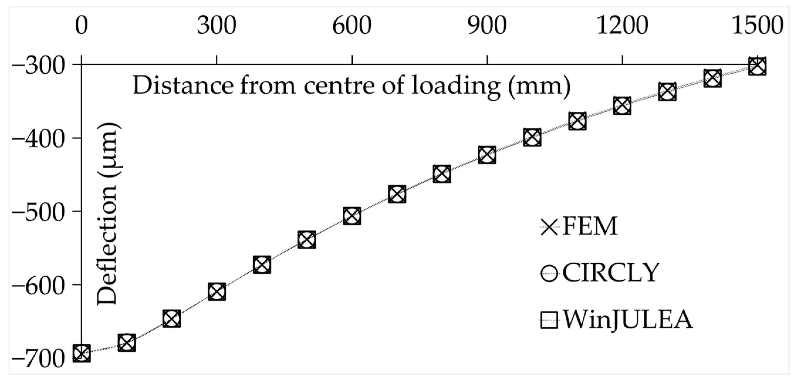 Comparison of FEM surface deflections with CIRCLY and WinJULEA outputs.