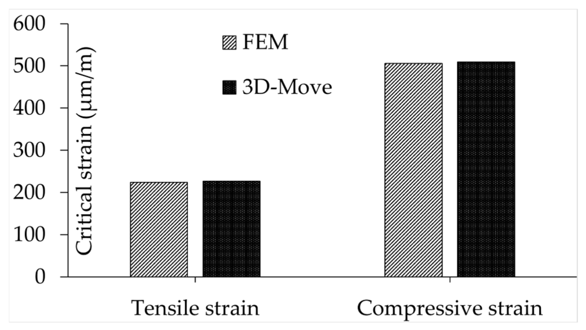 Comparison of FEM critical strains with 3D-Move outputs.