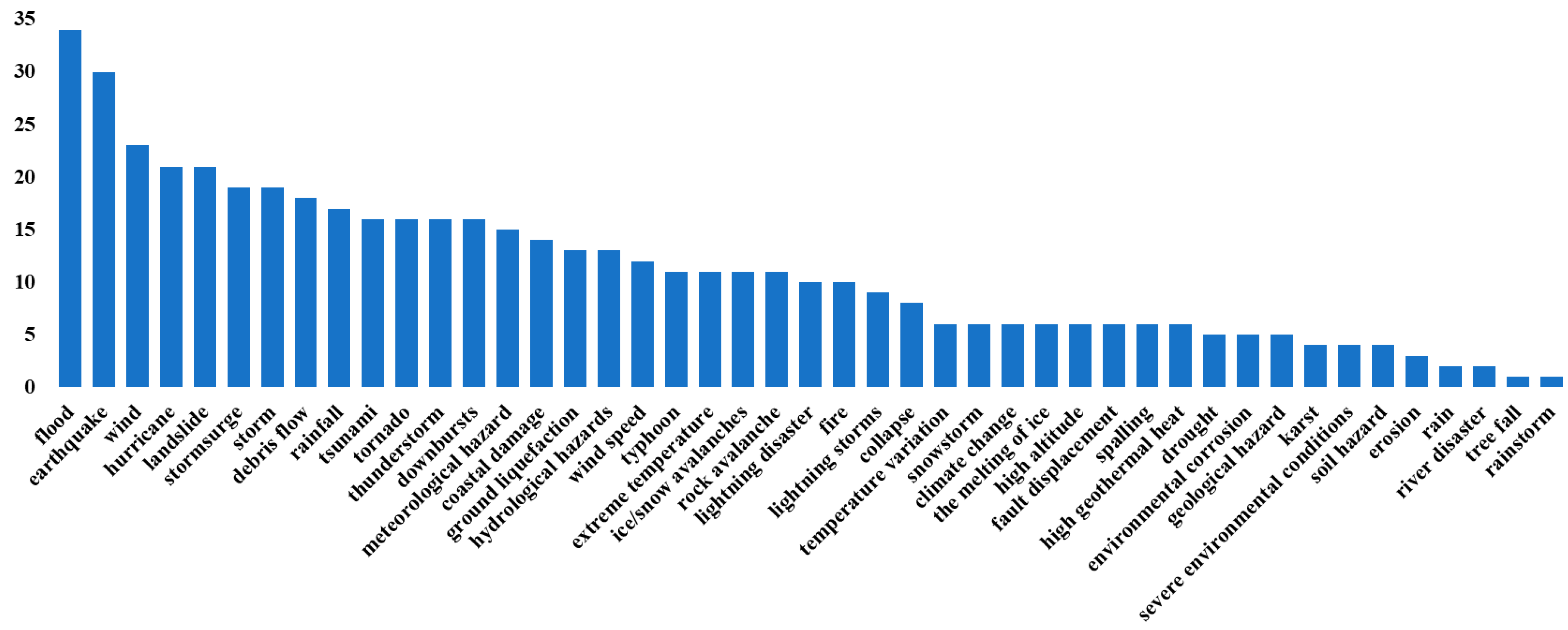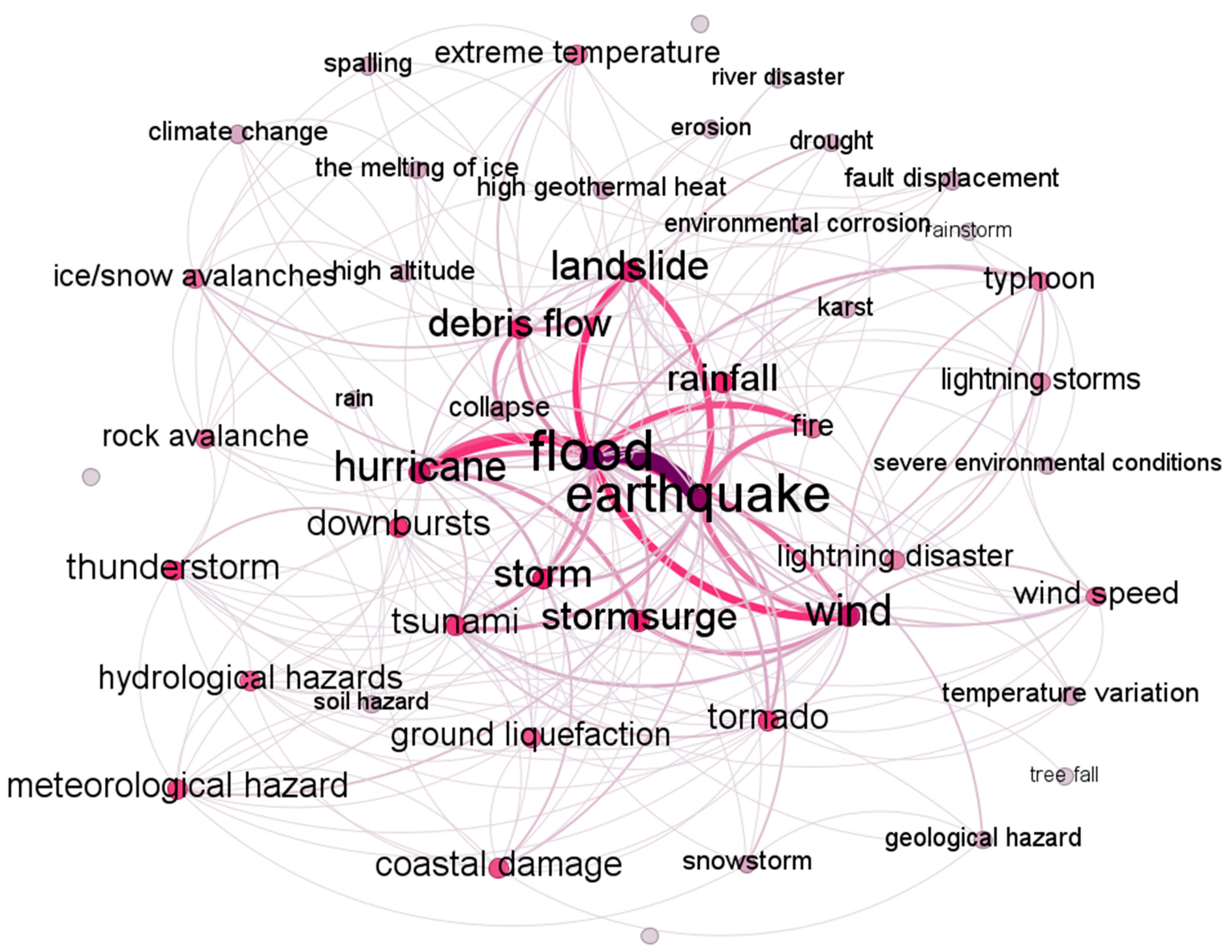 - New insights into overlooked hazards and practical implications: The study uncovers the low network connectivity and potential cascading effects of traditionally neglected risk factors, including hydrological hazards, extreme temperatures, lightning storms, and temperature variations. These findings highlight the urgent need for integrated, multi-hazard predictive models and offer actionable, evidence-based guidance for project managers to improve engineering design, optimize resource allocation, and strengthen disaster prevention and mitigation strategies.