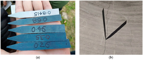 Crack width measurement: (a) crack measurement leaf gauges, (b) illustration of crack measurement.