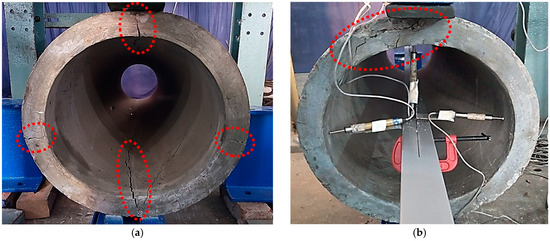 - Zhang, Z.; Fang, H.; Li, B.; Wang, F. Mechanical Properties of Concrete Pipes with Pre-Existing Cracks. Appl. Sci. 2020, 10, 1545. [Google Scholar] [CrossRef]