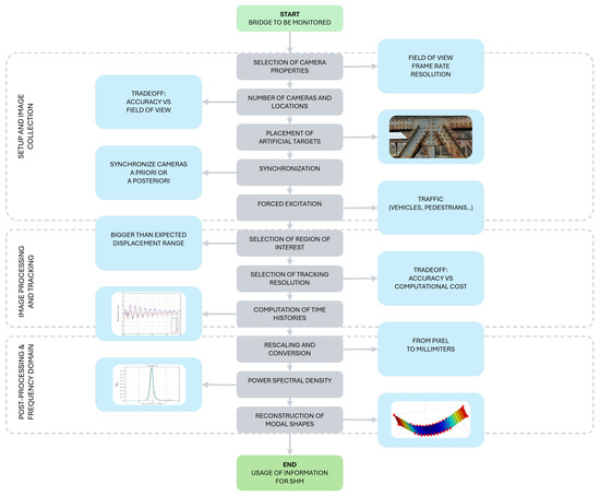 Flowchart of multiple synchronized camera approach for bridge dynamic identification.