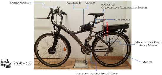 The proposed system for monitoring cycle path conditions is designed to be a low-cost, efficient, and easily deployable solution, leveraging widely available consumer-grade components. The architecture is centered around a Raspberry Pi 4 Model B, which acts as the primary processing unit for data acquisition and integration. The sensors directly connected to the Raspberry Pi include an IMU for capturing the vibration data, a GPS module for precise geolocation, and a camera module for visual documentation of the cycle path’s surface conditions. Additionally, Arduino Uno, which is connected to the Raspberry Pi via USB, is responsible for managing the Hall Effect sensor in order to accurately measure the distance traveled.