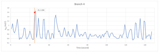 spike of 1.59 m/s2 at 25th second on Branch 4.