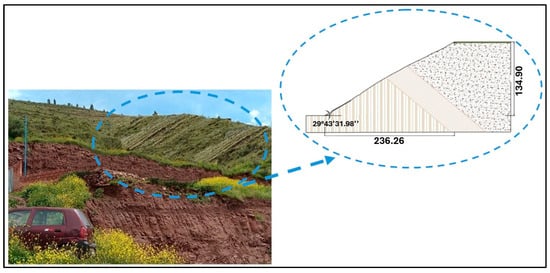 The average slope of a terrain according to the RNE-G.040 [11] standard is a percentage that indicates the measured inclination of a terrain concerning the horizontal plane, calculated based on the maximum and minimum levels of the terrain. To balance the forces of the soil, it is possible to consider the abatement of the slope. The slope conformation has the purpose of balancing the mass of the soil, reducing the forces that generate the movement of the slope.