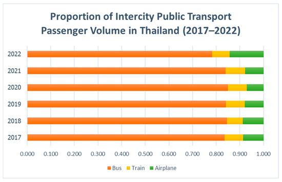 Figure 1. The proportion of intercity public transport passenger volume in Thailand (2017–2022).
