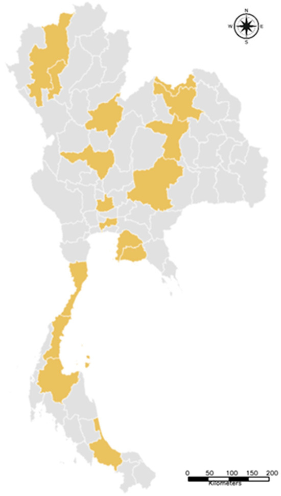 40. NESDC. Gross Regional and Provincial Product Chain Volume Measure 2020 Edition; NESDC: Bangkok, Thailand, 2022. [Google Scholar]