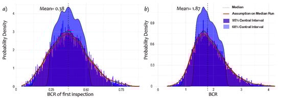 Figure 8 compares the benefit–cost ratio (BCR) distribution (DBCR of first Inspection) for the initial and 10th inspections, calculated as