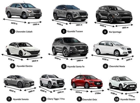 The study considered a representative sample of vehicle types, ensuring that the results were applicable to diverse urban traffic compositions. The test fleet and key dimensions used for modeling and validation are summarized in
