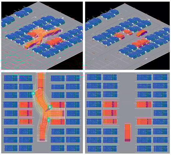 By combining geometric modeling, software-based simulations, and physical testing, the data collection process ensured that the study’s findings were comprehensive, evidence-backed, and practical. The integration of these datasets ensured that the recommended aisle widths maximize maneuverability, efficiency, and parking capacity while remaining grounded in real-world feasibility.