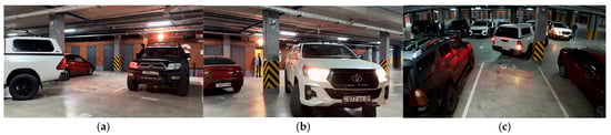 Real-world testing was conducted in operational underground parking facilities to validate geometric and simulation findings. Data were collected by performing controlled parking tests at aisle widths of 4.5 m, 5.0 m, 5.5 m, and 6.0 m, using a diverse fleet of vehicles. Key parameters recorded during physical testing included: