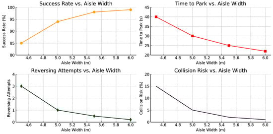 At 5.5 m aisle width, the collision risk further decreases to approximately 3%, suggesting that drivers can complete parking maneuvers more smoothly with fewer adjustments.