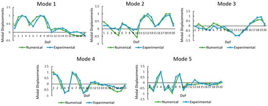 Graphical comparison between the experimental (AVT) and numerical (FE model) modal displacements.