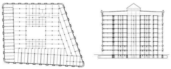 Plan and section representing Federal Archive Building, redrawn from [23].
