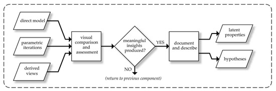 In the final component of the method, the models, iterations, and derived views were visually compared, with the aim of drawing out meaningful insights (Figure 12). If, in this component, no meaningful insights emerged, the previous component (variability determinations and parametric modeling) was repeated.