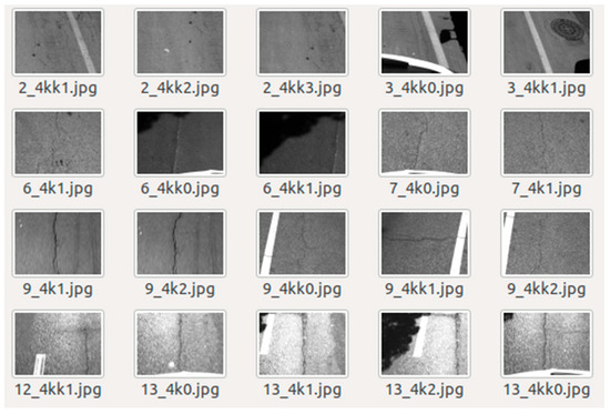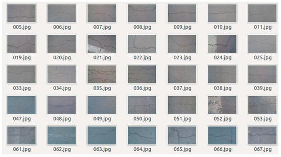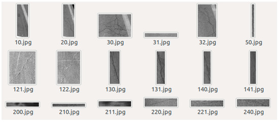 This study categorizes pavement distresses into four major types: simple cracks, alligator cracks, potholes, and patched areas. Among these, potholes and patched areas are excluded from the length and width calculations. The study further classifies simple cracks and alligator cracks into six subtypes, as illustrated in Figure 20. Simple cracks are subdivided into transverse cracks, longitudinal cracks, diagonal cracks, and herringbone cracks, while alligator cracks are divided into simple alligator cracks and complex alligator cracks.