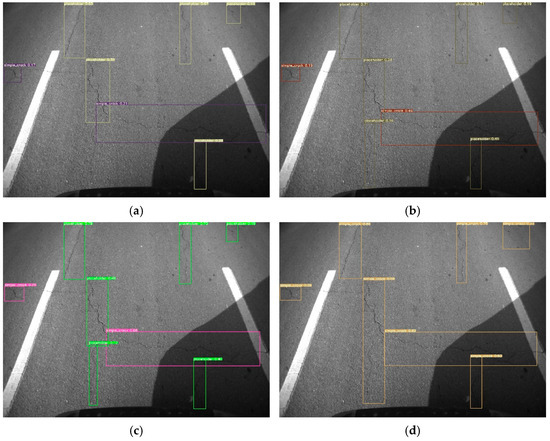 Detection results of different models of YOLOv5: (a) YOLOv5s, (b) YOLOv5m, (c) YOLOv5l, (d) YOLOv5x.