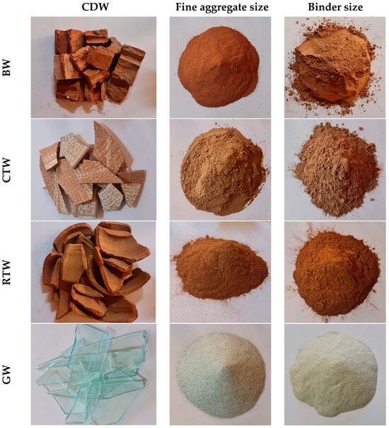 | CDW | Construction and demolition wastes | RTWF | Roof tile waste fine aggregate |