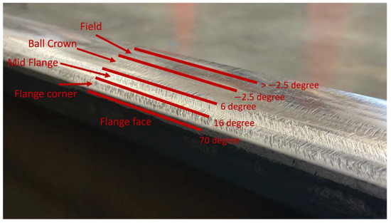 Figure 1. Detailed representation of rail surface geometry with key regions and angular gradients.