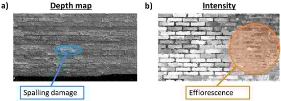 Figure 1, the surface damage made it difficult to visually determine the locations of the masonry joints in the point cloud from either the 3D or intensity data.