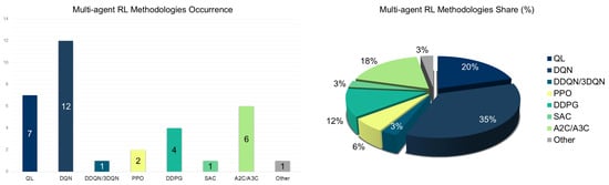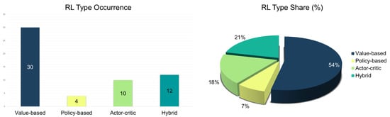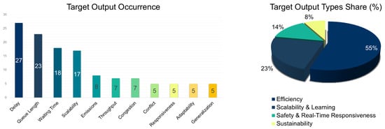 • Findings Synthesis: Key insights were systematically organized into thematic categories to enable clear comparisons across different RL methodologies applied to traffic signal control. This structured synthesis not only contributed to a comprehensive understanding of the field’s development but also enabled the generation of statistical analyses across different study attributes, as well as the identification of emerging trends and persistent challenges within the domain. Furthermore, it provided a solid foundation for formulating informed future research directions, highlighting gaps in current approaches and proposing potential advancements in RL-driven traffic signal control optimization.