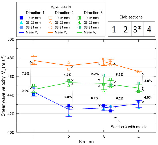 | Section | Vs1 (m·s−1) | Vs3 (m·s−1) | ||||