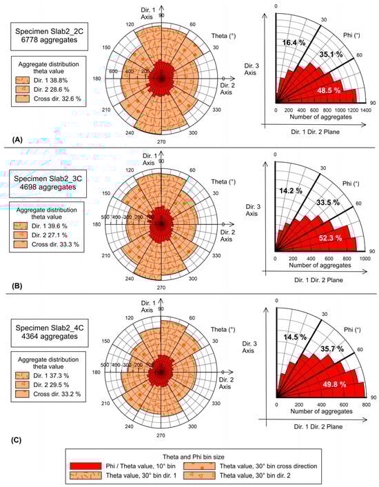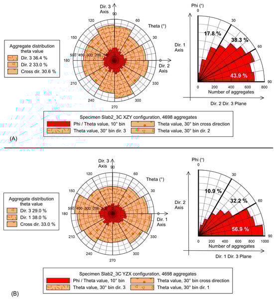 - CT scans highlighted a preferential orientation of the aggregate in the direction of the movement of the compacting wheel, dir. 1. However, a non-negligible part of the aggregates is oriented in the two other directions.