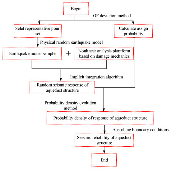 Generally, by combining the physical Equation (1) with the probability density evolution Equation (2) and solving them, the probability density function of the structural response during a certain period of time can be obtained. The specific solution process includes the following steps: