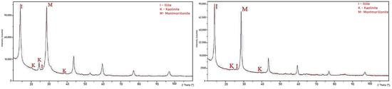 XRD analyses indicated that the samples contain illite and kaolinite as their predominant clay minerals. In the case of sample AM09, the presence of these minerals, especially illite, supports its classification as a lateritic soil, since this type of soil is characterized by the presence of more active minerals, as described by Nogami and Villibor [41].