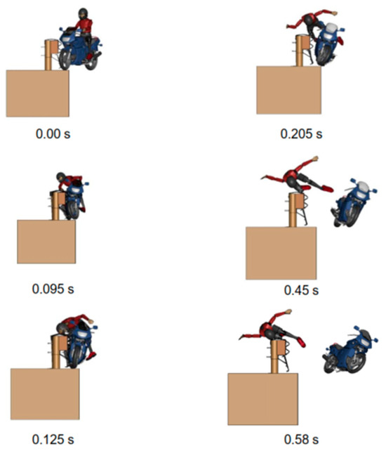 Example of simulated motorcyclist impact with a concrete barrier [12].